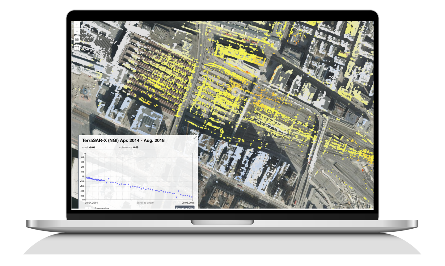 Utviklingen av Bjørvika-området i Oslo er et godt eksempel på hvordan vår InSAR-overvåking integreres med en rekke andre tjenester.
