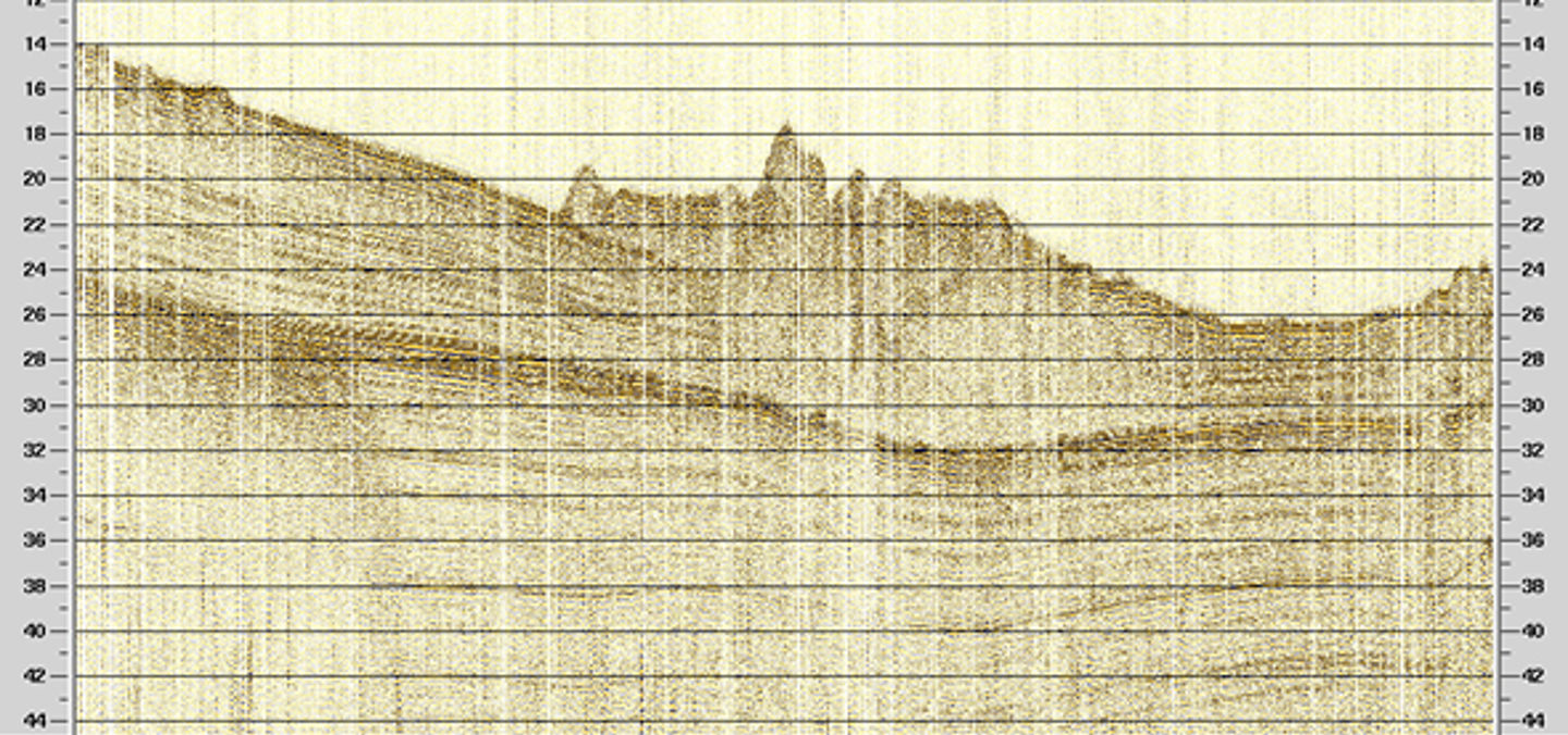 Figure 4: Example of VHR-3D chirp seismic profile (in-line) in Finneidfjord across the landslide deposit (central lobe) with unprecedented resolution. The VHR-3D system is courtesy of NOCS