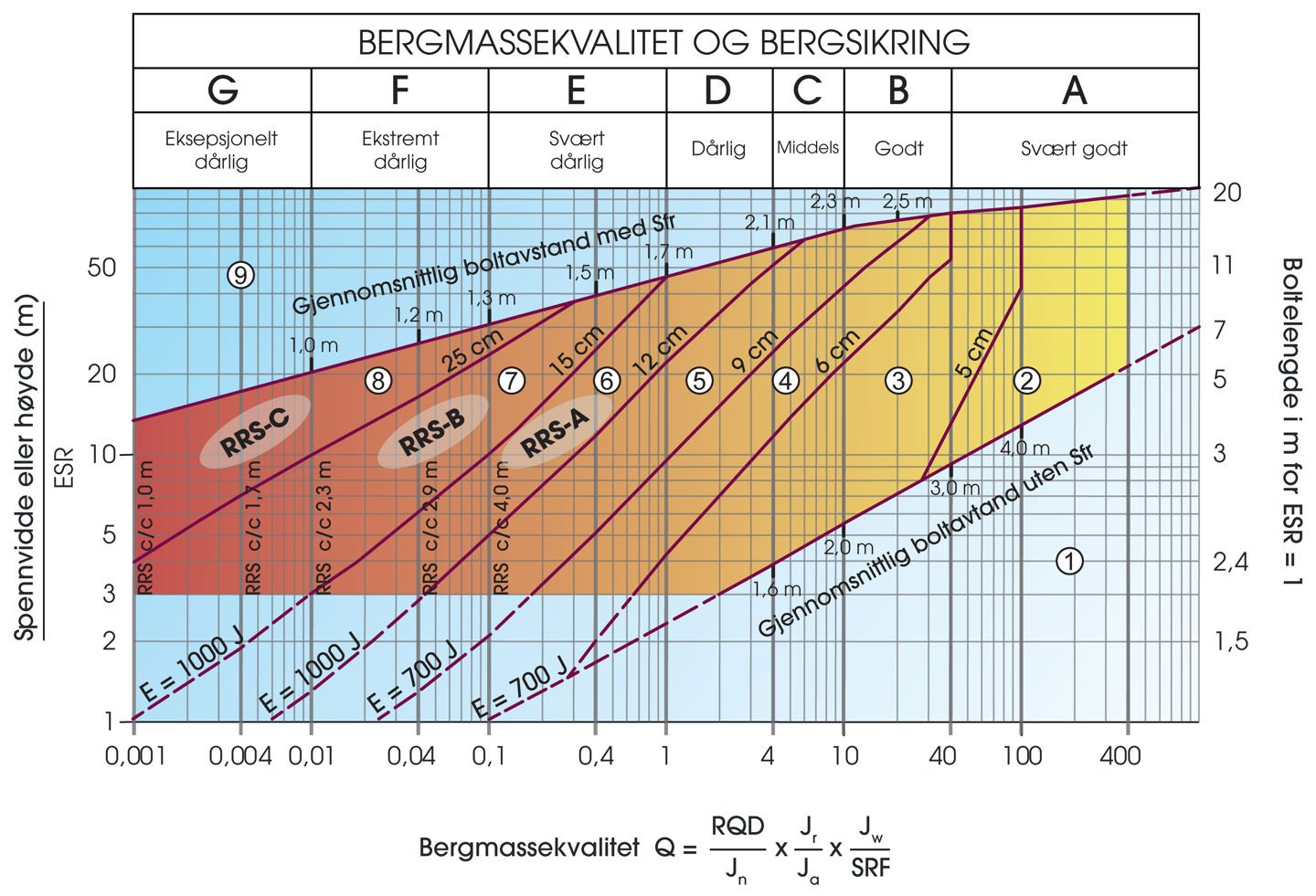 Avgjørende for sikringsmengden i en tunnel er bergkvaliteten (Q-verdi), spennvidde og krav til sikkerhet for anlegget i forhold til hva anlegget skal brukes til (ESR, Excavation Support Ratio, uttrykker krav til sikkerhet). Sikringsdiagrammet viser sammenhengen mellom disse, og ulike felter i diagrammet tilsvarer en bestemt type sikring.