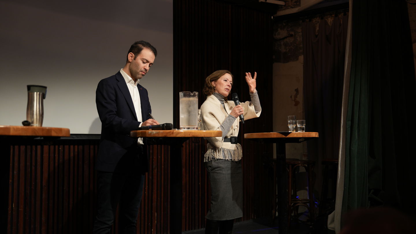 Arbeiderpartiets Mani Hussaini og Høyres Kari Sofie Bjørnsen, begge medlemmer av Stortingets energi- og miljøkomité. De uttrykte sterk støtte til havvind, men understreket at langsiktig satsing krever brede, tverrpolitiske forlik som står seg over tid. ( Ruben Anda / NIVA)