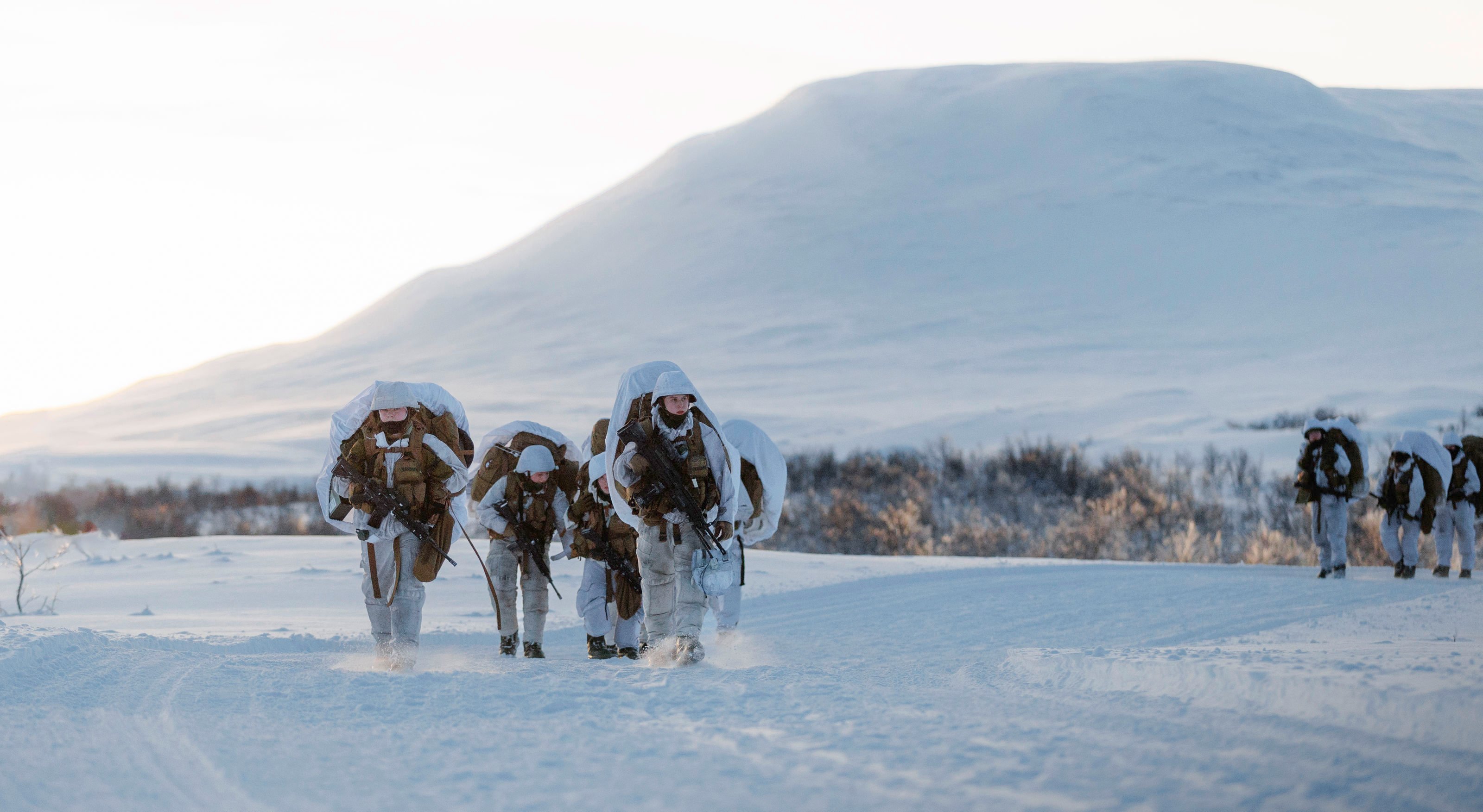 Soldater under vinterøvelse i Nord-Norge. I dag har Forsvaret egne skredgrupper som vurderer forholdene i øvingsområdene hver morgen før aktivitetene starter. ( Foto: Forsvaret)
