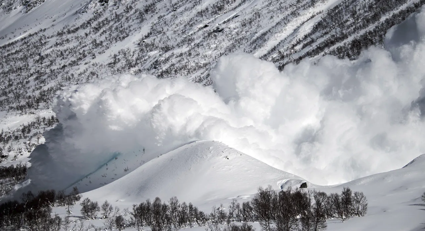 Et kontrollert utløst snøskred ved forsøksfeltet Ryggfonn på Strynefjellet. NGI har utløst skred her siden tidlig på 1970-tallet for å måle hastighet, trykkreftene og utløpsdistanser – data som er avgjørende for å validere beregningsmodellene i dagens skredkart. ( Foto: NGI)