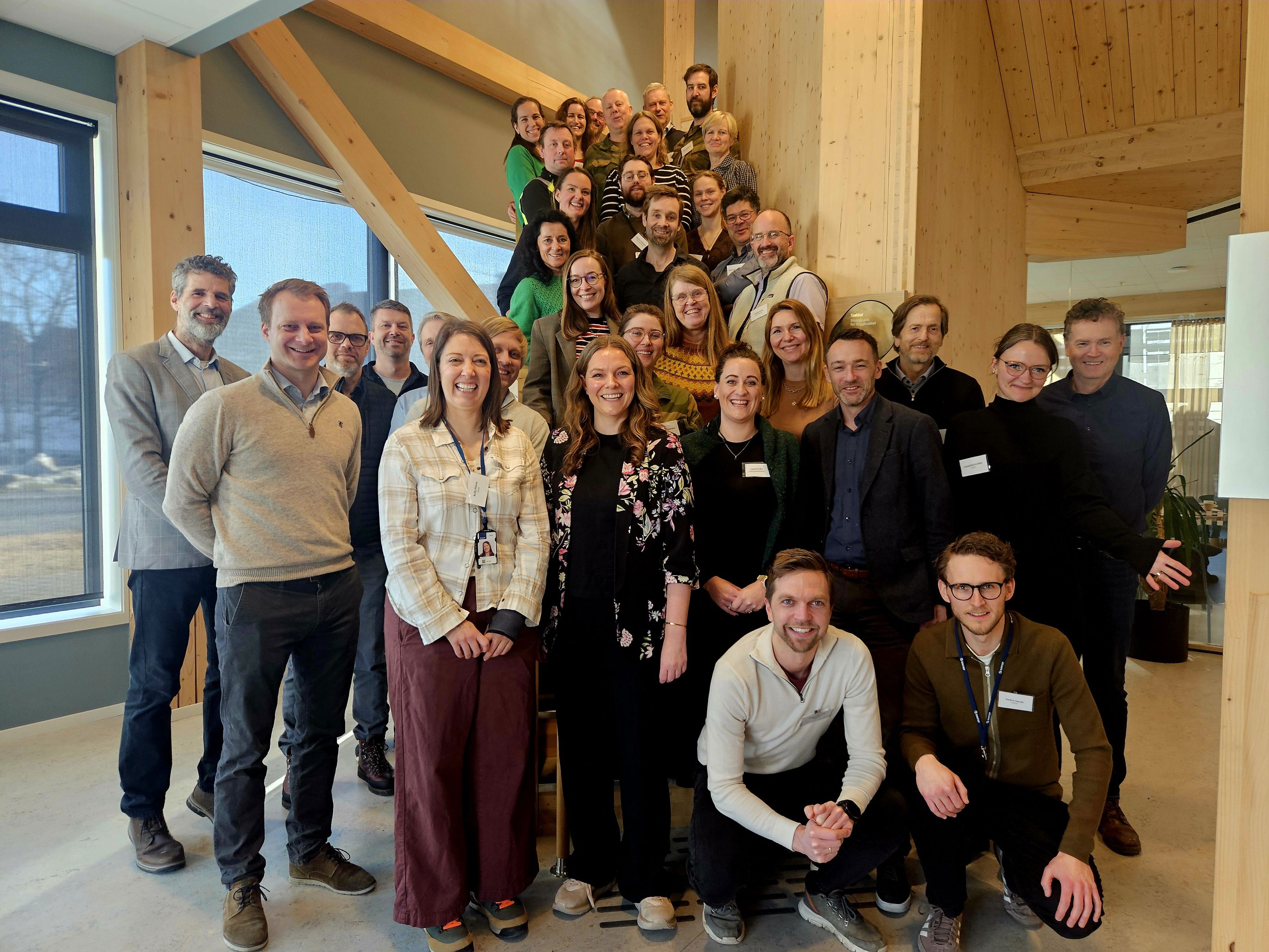 Deltakerne på oppstartsamlingen for SAMTRANS i Trondheim 11.–12. mars 2026. Prosjektet samler forskere, transportetater, kommuner og Forsvaret for å styrke beredskapen i transportsektoren. ( Foto: Marie Brøvig Andersen / SINTEF)