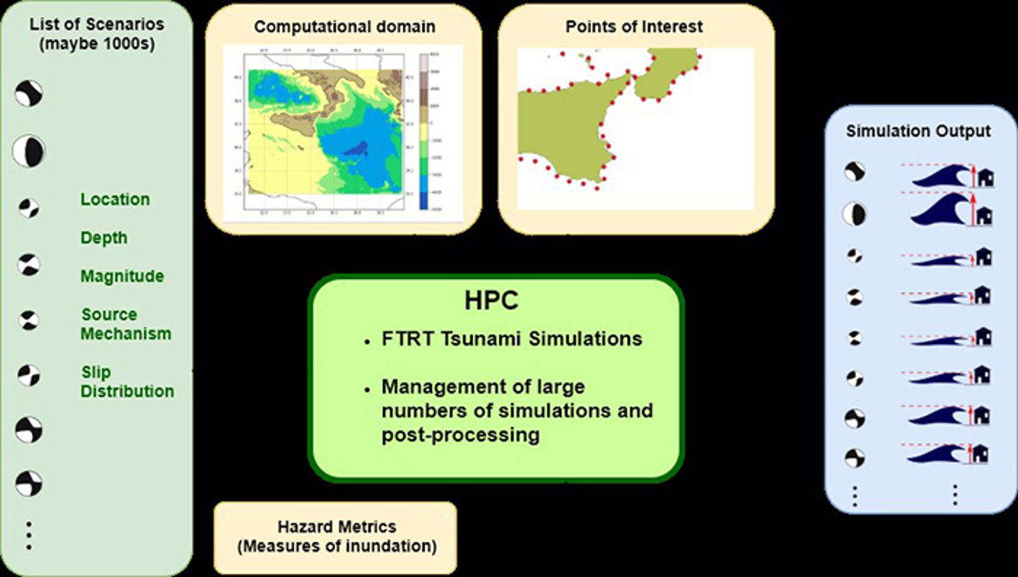 The main aim is to utilize large High Performance Computing resources to map the tsunami inundation hazard at very high resolution while, at the same time, estimating the large uncertainty associated with tsunamis.