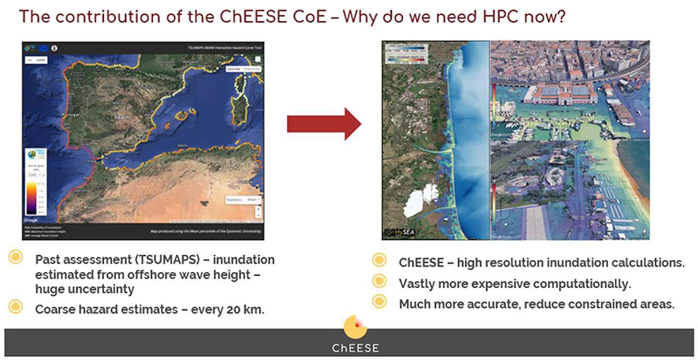 A local PTHA, with both high-resolution inundation simulations and the vast numbers of scenarios needed, has only become feasible with highly parallel calculations on vast supercomputers. We sketch how HPC has advanced the state of PTHA in Figure 2.