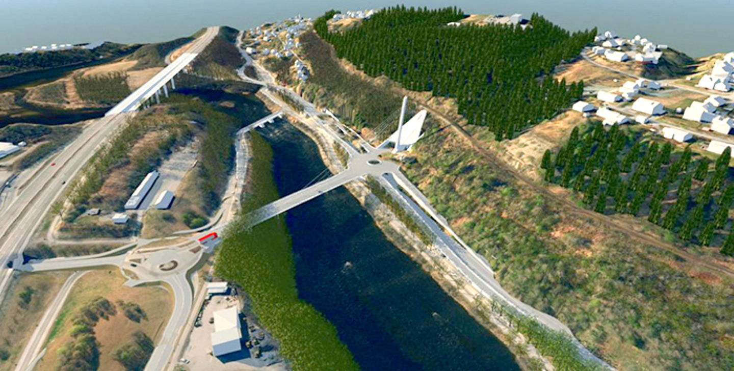 Miljøpakken i Trondheim inkluderer ny kjørebru over Nidelva nord for eksisterende Sluppen bru med tilhørende veganlegg.