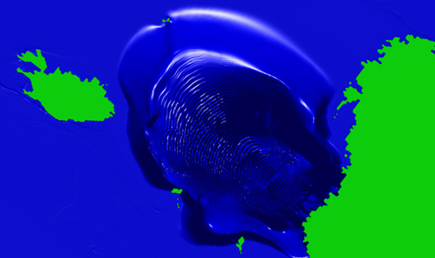 Resultat fra numerisk simulering av tsunamien som ble generert av det voldsomme skredet.