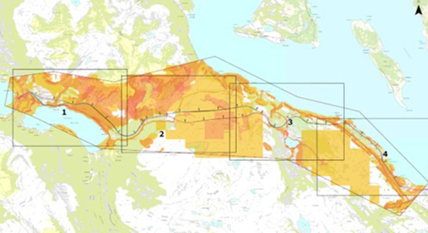Eksempel på kartangivelse av aktuelt område for undersøkelser av sårbarhet og risiko